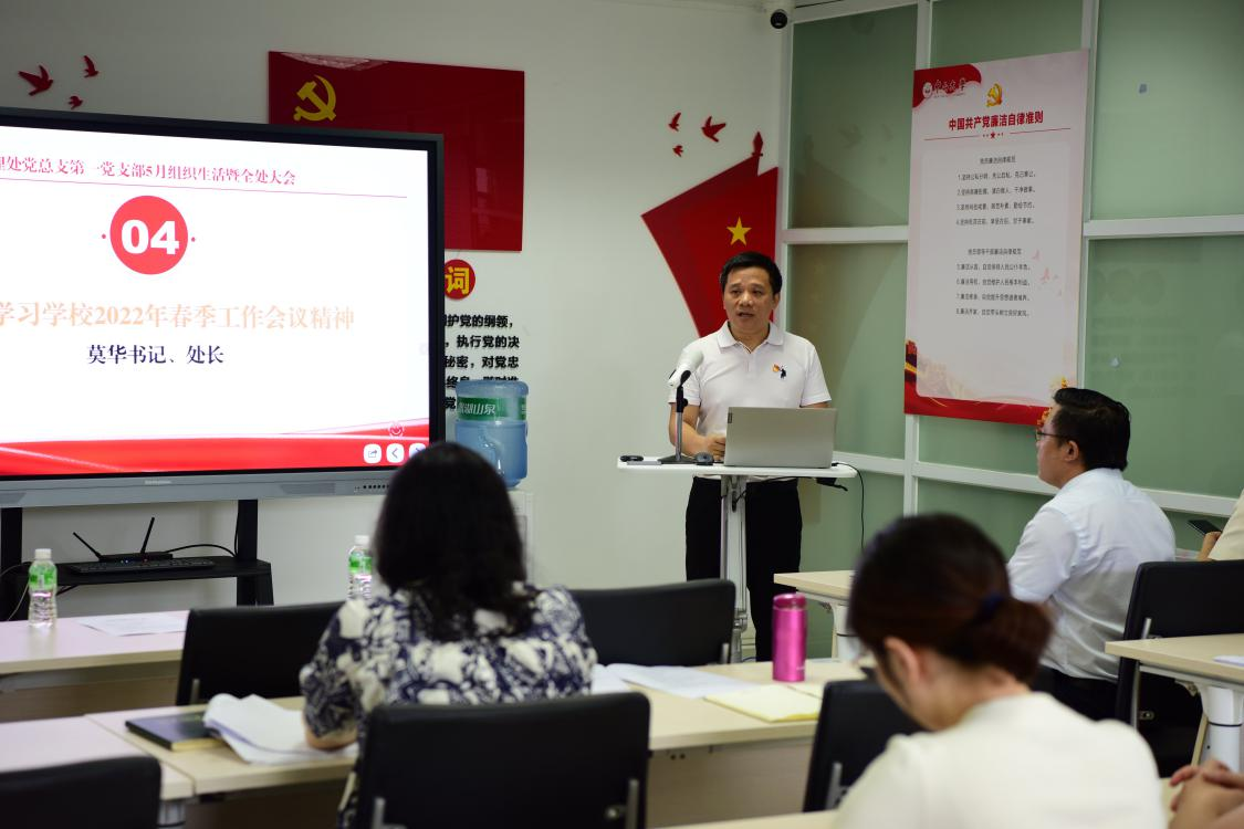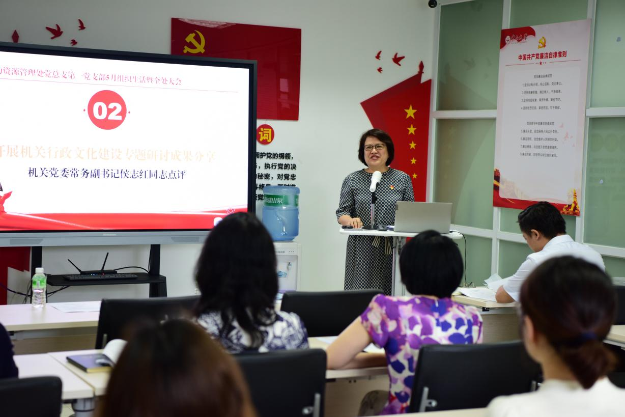 2022年5月31日下午,人力资源管理处党总支第一党支部在中山楼431会议室开展2022年5月组织生活暨全处大会,机关党委常务副书记侯志红同志、赵静同志列席指导。