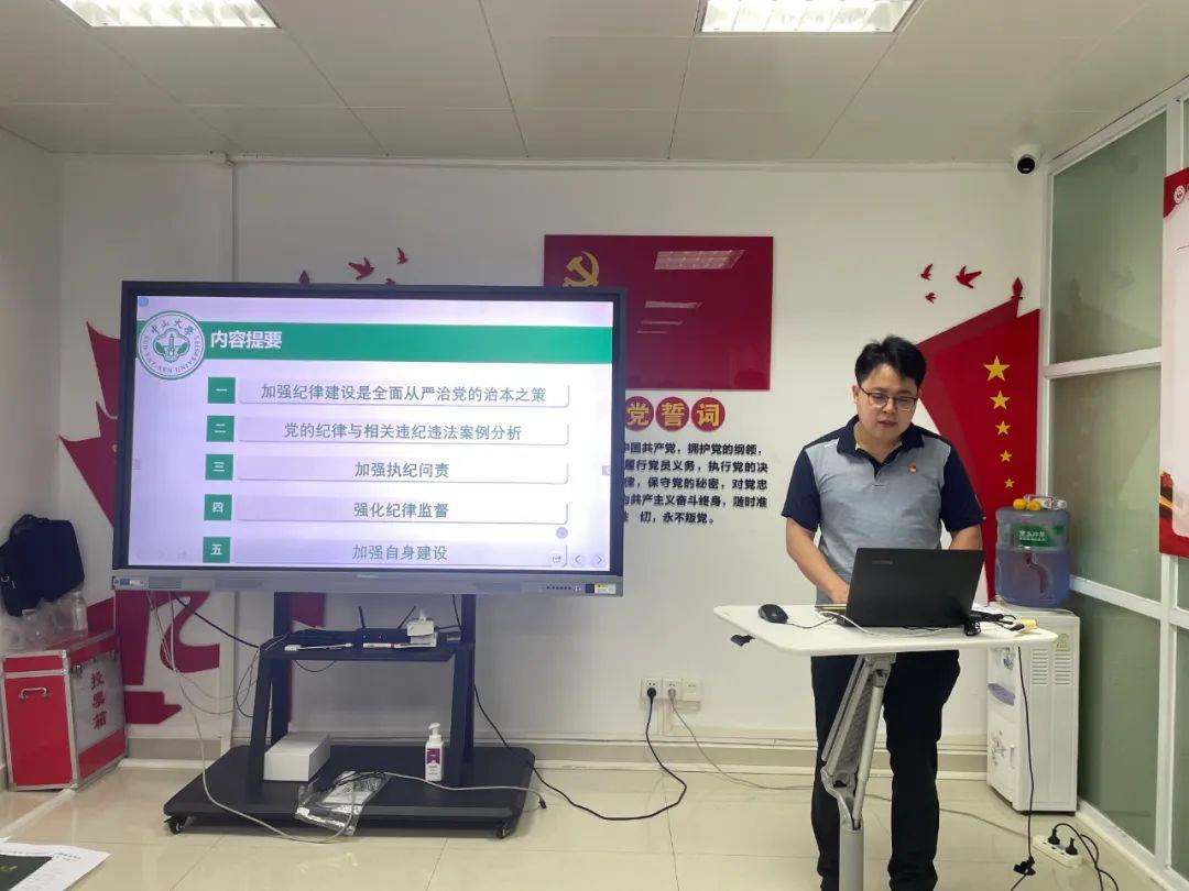 人力资源管理处党总支纪检委员刘玉亮同志开展专题党课,结合典型案例剖析,深入浅出地开展了一次纪律作风教育。他强调,广大党员特别是年轻党员干部要时刻牢记习近平总书记的谆谆教导,坚决做到对党忠诚,练好内功、提升修养、增强本领,时刻保持自省自警,不断强化纪律规矩意识,提高自律能力,真正系好廉洁从业的“第一粒扣子”。为扎实落实党风廉政建设工作,进一步引导党员严守纪律规矩、廉洁从业履职。
